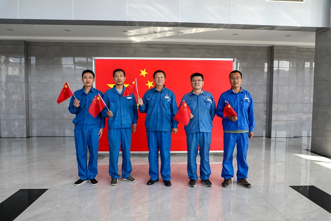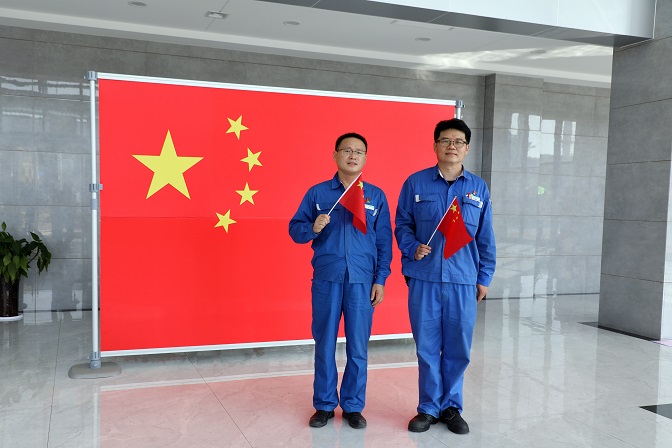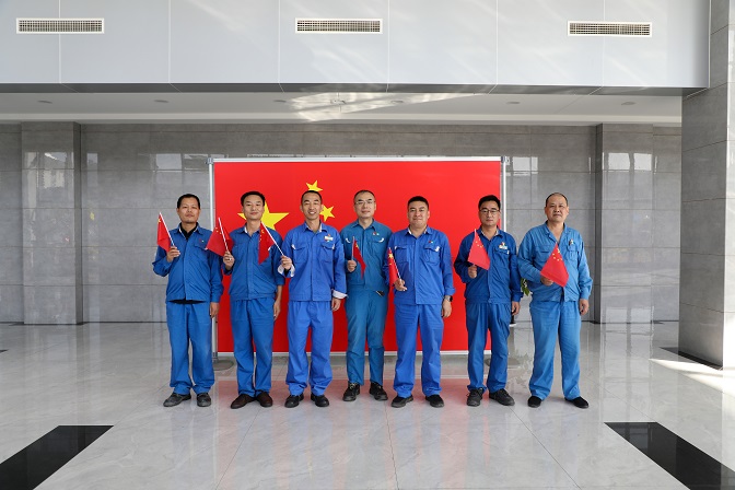 升旗儀式結束后,職工們激動的心情久久不能平靜,紛紛拿出手機記錄下寶貴瞬間。大家揮舞手中的紅旗,在“熱烈慶祝中國共產黨成立100周年”的大展板前擺個造型……對祖國的無限熱愛定格在一幅幅難忘的畫面里,銘刻在九月澄澈的廠區,也深深地烙印在每個人的心間。